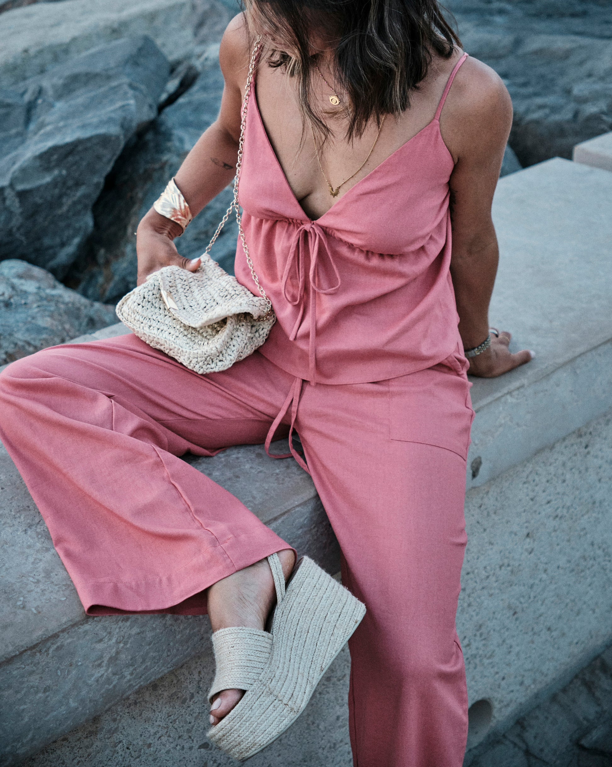 Meet the Brûlé women's pants, designed for comfort and style in casual clothing. Featuring a straight-leg fit, elastic waistband with adjustable tie, and functional front pockets, these pants offer flowy, lightweight comfort, perfect for summer days. Pair them with the Rosé blouse for a chic casual look, or mix and match with your favorite pieces for a modern, relaxed outfit.